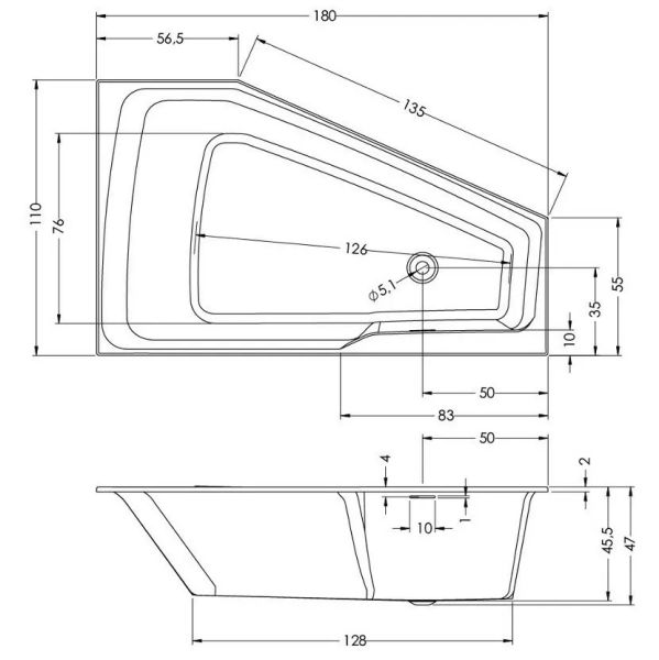 Асимметричная ванна RIHO RETHINK Space 180x110 L PLUG & PLAY, из глянцевого белого акрила с тонкими бортами и большим внутренним пространством, сливом Push-Open и щелевым переливом, представляет собой полностью собранную на заводе конструкцию.