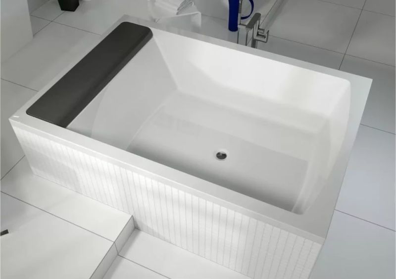 Материал непористый и гладкий, поэтому на нём не остаются известковый налёт и бактерии, поверхность ванны легко очищается.