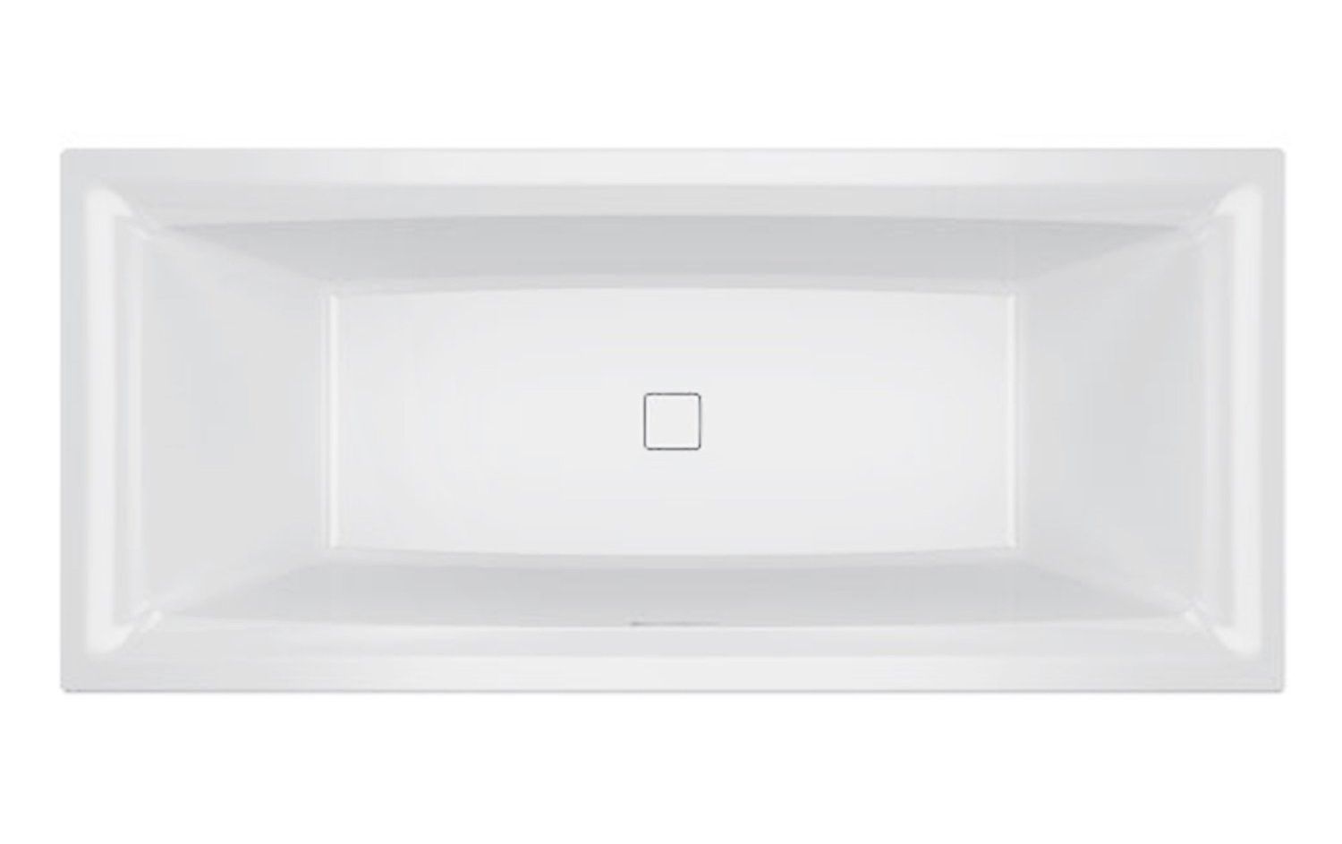 Вместо стандартного круглого слива на дне ванны установлен квадратный декоративный элемент с функцией clic-clac. Перелив представляет собой гладкую удлиненную щель. Так что больше никакой поворотной ручки.