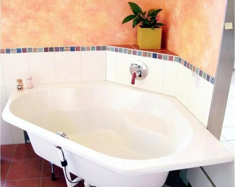 Материал непористый и гладкий, поэтому на нём не остаются известковый налёт и бактерии, поверхность ванны легко очищается.