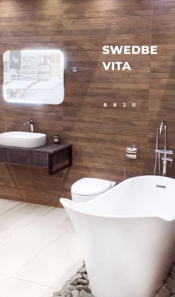 Ванна Swedbe Vita изготовлена из литьевого акрила Lucite inc® (Великобритания), имеет два слоя: непосредственно литьевой акрил (7 мм) и слой армирования (5мм). Совокупно до 12 мм толщины.