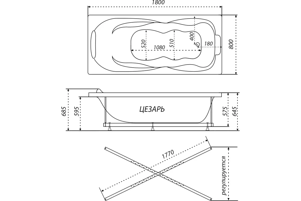 Акриловая ванна Triton Цезарь Щ0000042342 180x80 см на Х-каркасе белый купить