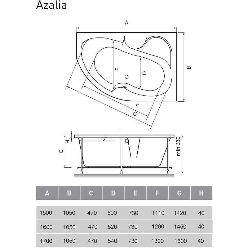 Высота ванны на каркасе: 63 см.