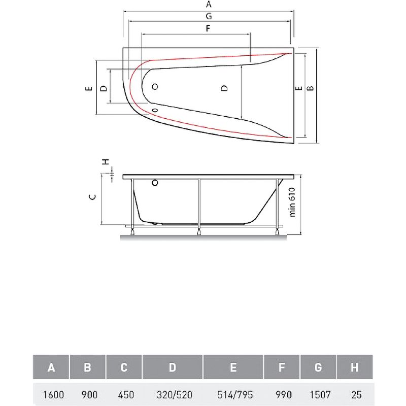 Акриловая ванна Vayer Boomerang 160x90 R Гл000010849 без гидромассажаХарактеристики:Цвет: белый.