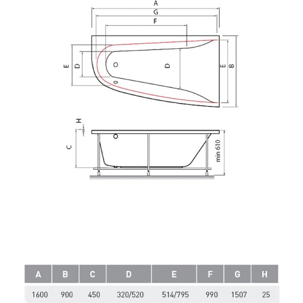 Высота ванны на каркасе: 61 см.