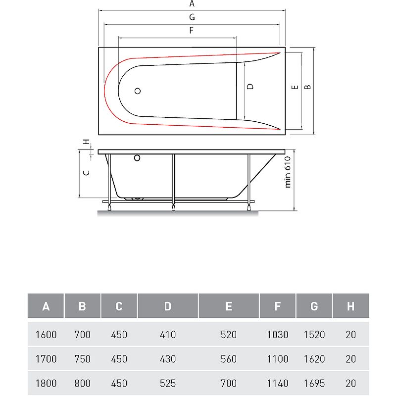 Акриловая ванна Vayer Boomerang 170x75 Гл000009590 без гидромассажа