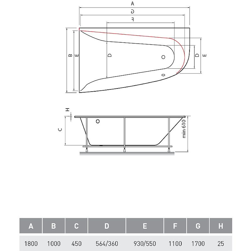 Расположение сливного отверстия: в ногах.