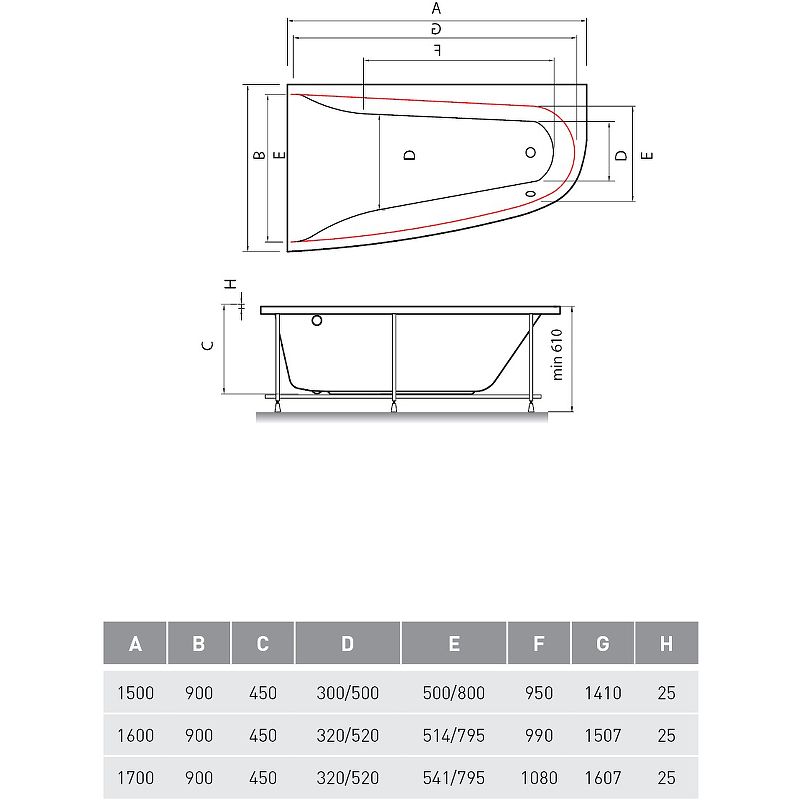 Высота ванны на каркасе: 61 см.