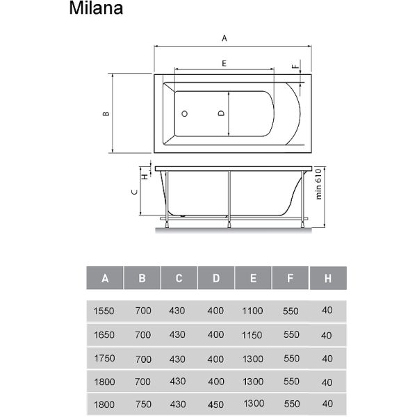 Акриловая ванна Vayer Milana 175x70 Гл000024272 без гидромассажа