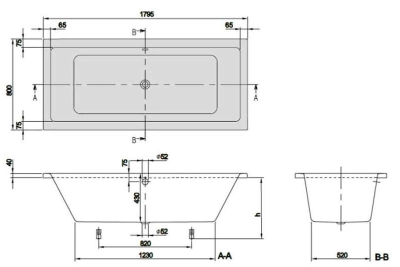 Акриловая ванна Villeroy Boch Targa Plus Duo UBA180NES2V01+U99740000 180х80 см ножки в комплектеРазмер: 180х80х41 см