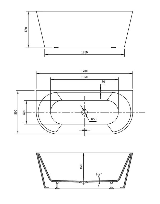 Ванна акриловая Vincea VBT-421-1700MB, 170 x 80 см, слив-перелив в комплекте, черный матовыйОсновные характеристики:Размер: 170 x 80 x 58 см