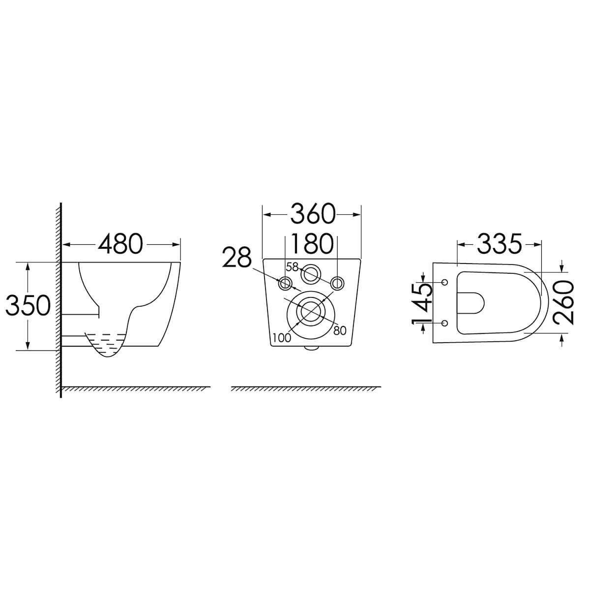 • Прилегание унитаза к стене: