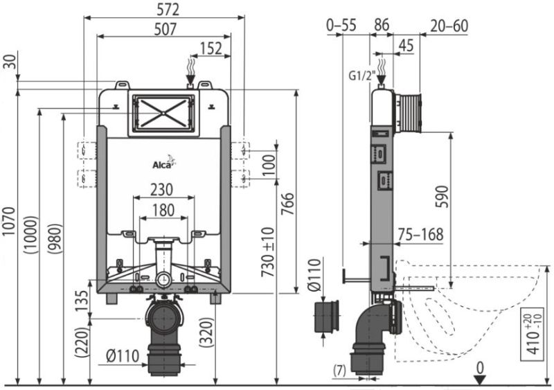 • Совместима со всеми кнопками управления Alcaplast