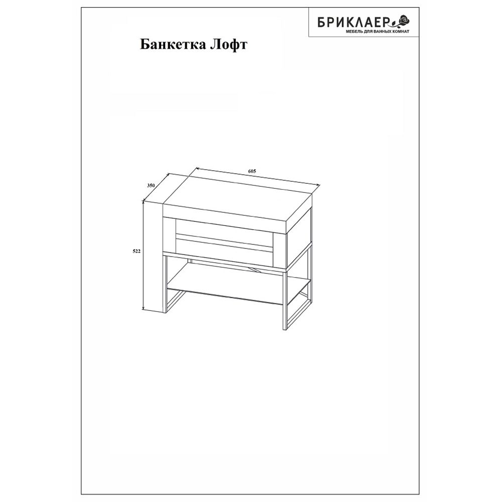Банкетка Бриклаер Лофт 60 выполнена в современном стиле с металлическими ножками и мягкой крышкой-сиденьем, под которой имеется ящик для хранения различных принадлежностей. Подходит для использования в помещениях с повышенной влажностью и отлично впишется в интерьер ванной комнаты.