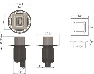 Решетка толщина 1,5мм, нержавеющая сталь AISI 304 Горловина трапа, пластик Фланец трапапа с переходником, РР Монтажная заглушка, PP Самопромывной S-образный сифон PP: вертикальный выпуск, пропускная способность 48л/мин, монтаж 360° Монтажный ключ, пластикДушевой трап Berges Wasserhaus Platz Uno 090069 10х10 Матовый хром – является надежным дренажным устройством в составе современной системы водоотведения. Страна изготовления – Германия, коллекция Platz Uno.Berges Wasserhaus Platz Uno 090069 10х10 Матовый хром выполнен в одном корпусе с гидрозатвором, благодаря чему достигается герметичность изделия и создается надежный барьер против запахов из системы канализации. Входная решетка квадратной формы является одним из наиболее удачных вариантов в том случае, когда Душевой трап Berges Wasserhaus необходимо интегрировать в плиточную отделку пола. Видимая часть конструкции изготовлена из полированной нержавеющей стали, которая отлично сочетается с другими элементами коллекции Platz Uno. Габаритные размеры изделия составляют 23.50х23.50 см при максимальной длине и ширине внешней части 10.0х10.0 см. Дренажное устройство производства Berges Wasserhaus имеет минимальную высоту – тем самым достигается простота установки путем встраивания в пол ванной. Конструкцией предусмотрен вертикальный выпуск сточных вод. Этим достигается высокая пропускная способность лотка Berges Wasserhaus Platz Uno 090069 10х10 Матовый хром и возможность монтажа в любом месте, независимо от схемы разводки канализационных труб. Пластик, из которого сделан патрубок и элементы слива дренажного устройства Berges Wasserhaus, не боится вредного воздействия влаги, бытовой химии, высокой температуры и прочих разрушающих факторов. Хром матовый цвет наружной решетки лотка Berges Wasserhaus прекрасно сочетается с другими элементами коллекции Platz Uno.