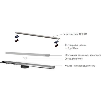 Душевой лоток Berges Wasserhaus C1 Brise 090033 80 Матовый хром – является надежным дренажным устройством в составе современной системы водоотведения. Страна изготовления – Германия, коллекция C1 Brise.Berges Wasserhaus C1 Brise 090033 80 Матовый хром выполнен в одном корпусе с гидрозатвором, благодаря чему достигается герметичность изделия и создается надежный барьер против запахов из системы канализации. Прямоугольную форму решетки сантехнического устройства Berges Wasserhaus можно удачно обыграть при установке устройства вдоль стен, рядом с перегородкой и т.д. Видимая часть конструкции изготовлена из полированной нержавеющей стали, которая отлично сочетается с другими элементами коллекции C1 Brise. Габаритные размеры изделия составляют 89.50х12.10 см при максимальной длине и ширине внешней части 80.0х4.4 см. Дренажное устройство производства Berges Wasserhaus имеет минимальную высоту – тем самым достигается простота установки путем встраивания в пол ванной. Конструкцией предусмотрен вертикальный выпуск сточных вод. Этим достигается высокая пропускная способность лотка Berges Wasserhaus C1 Brise 090033 80 Матовый хром и возможность монтажа в любом месте, независимо от схемы разводки канализационных труб. Пластик, из которого сделан патрубок и элементы слива дренажного устройства Berges Wasserhaus, не боится вредного воздействия влаги, бытовой химии, высокой температуры и прочих разрушающих факторов. Хром матовый цвет наружной решетки лотка Berges Wasserhaus прекрасно сочетается с другими элементами коллекции C1 Brise.