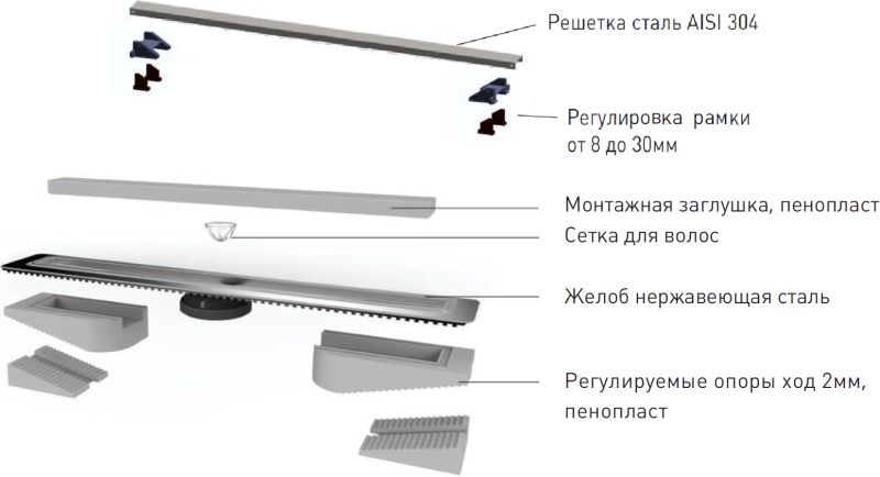 Душевой лоток Berges Wasserhaus C1 Norma 090135 40 Матовый хром купить