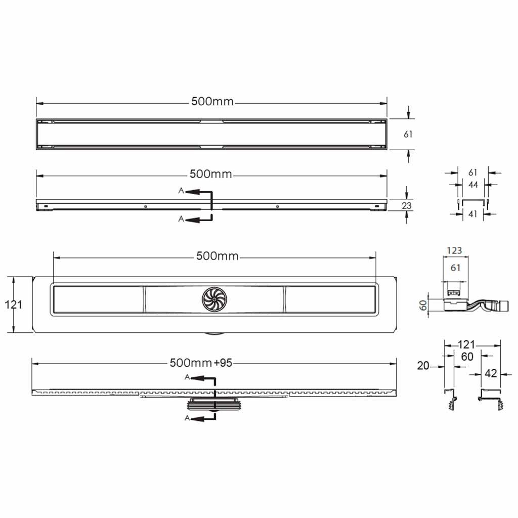Душевой лоток Berges Wasserhaus B1 Keramik 090116 50 Матовый хром