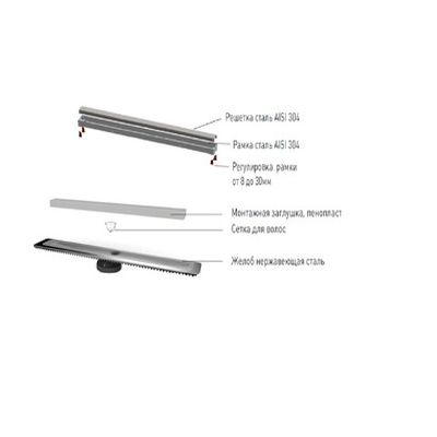 Душевой лоток Berges Wasserhaus B1 Keramik 090017 60 Матовый хром – является надежным дренажным устройством в составе современной системы водоотведения. Страна изготовления – Германия, коллекция B1 Keramik.Berges Wasserhaus B1 Keramik 090017 60 Матовый хром выполнен в одном корпусе с гидрозатвором, благодаря чему достигается герметичность изделия и создается надежный барьер против запахов из системы канализации. Прямоугольную форму решетки сантехнического устройства Berges Wasserhaus можно удачно обыграть при установке устройства вдоль стен, рядом с перегородкой и т.д. Видимая часть конструкции изготовлена из полированной нержавеющей стали, которая отлично сочетается с другими элементами коллекции B1 Keramik. Габаритные размеры изделия составляют 69.50х12.10 см при максимальной длине и ширине внешней части 60.0х6.1 см. Дренажное устройство производства Berges Wasserhaus имеет минимальную высоту – тем самым достигается простота установки путем встраивания в пол ванной. Конструкцией предусмотрен вертикальный выпуск сточных вод. Этим достигается высокая пропускная способность лотка Berges Wasserhaus B1 Keramik 090017 60 Матовый хром и возможность монтажа в любом месте, независимо от схемы разводки канализационных труб. Пластик, из которого сделан патрубок и элементы слива дренажного устройства Berges Wasserhaus, не боится вредного воздействия влаги, бытовой химии, высокой температуры и прочих разрушающих факторов. Хром матовый цвет наружной решетки лотка Berges Wasserhaus прекрасно сочетается с другими элементами коллекции B1 Keramik.