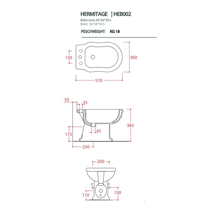Биде Artceram HERMITAGE HEB002 01 00*1 белоеArtceram HERMITAGE биде напольное 55*36см с 1 отв под смеситель с креплением, цвет белый