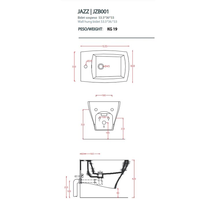 Биде Artceram JAZZ JZB001 05 00 bi matt*1 белоеArtceram JAZZ Биде подвесное 54x36см c креплением, с 1 отв под смеситель .цвет белый матовый
