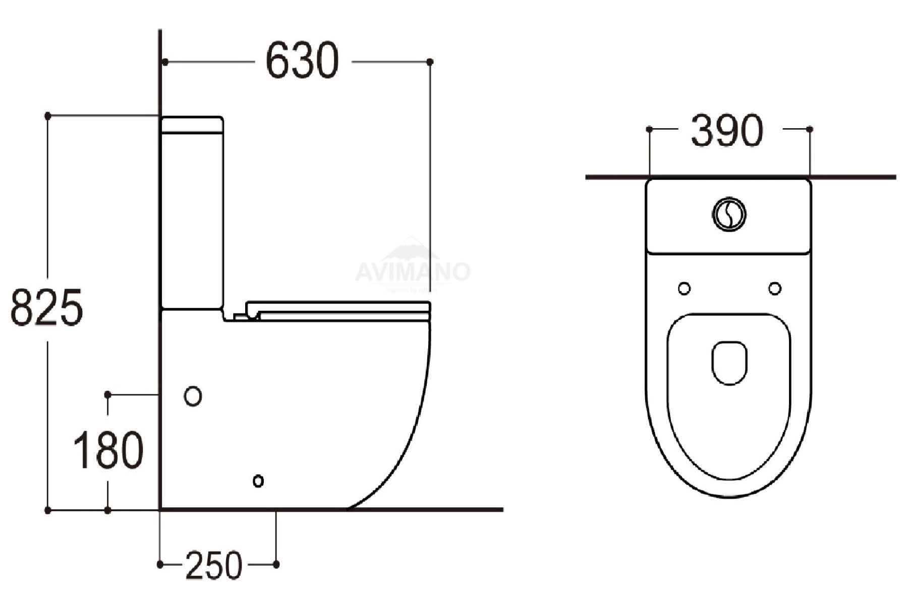Безободковый унитаз-компакт с крышкой-сидением из дюропласта с функцией soft-close и quick release, система слива 3/4,5л.