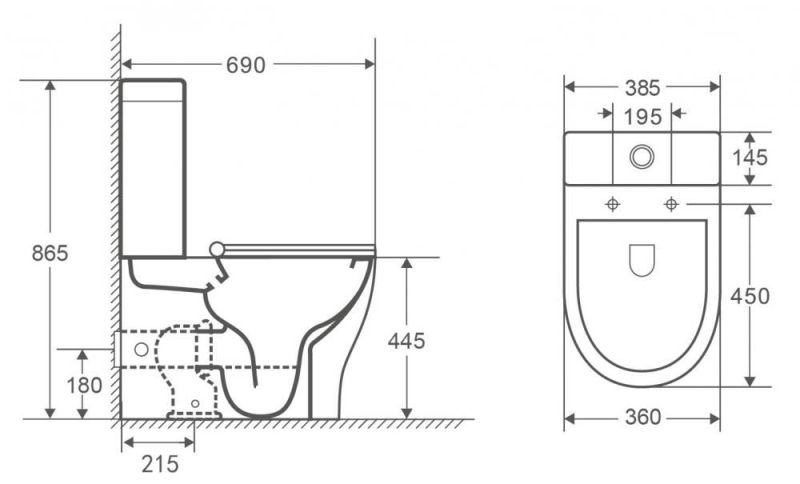 Слив выполняется в двух режимах, при помощи механической кнопки. Смыв происходит вихревым смывающим потоком. Также, сливная система оснащена системой "анти всплеск" и функцией регуляции объёма смыва.ПреимуществаПреимущества данного унитаза: