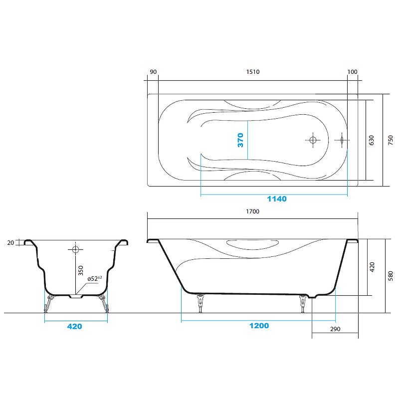Чугунная ванна Aquatek Гамма 170x75 AQ8070F-00 без антискользящего покрытия