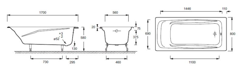 Чугунная ванна Jacob Delafon REPOS E2918-S-00 170 x 80