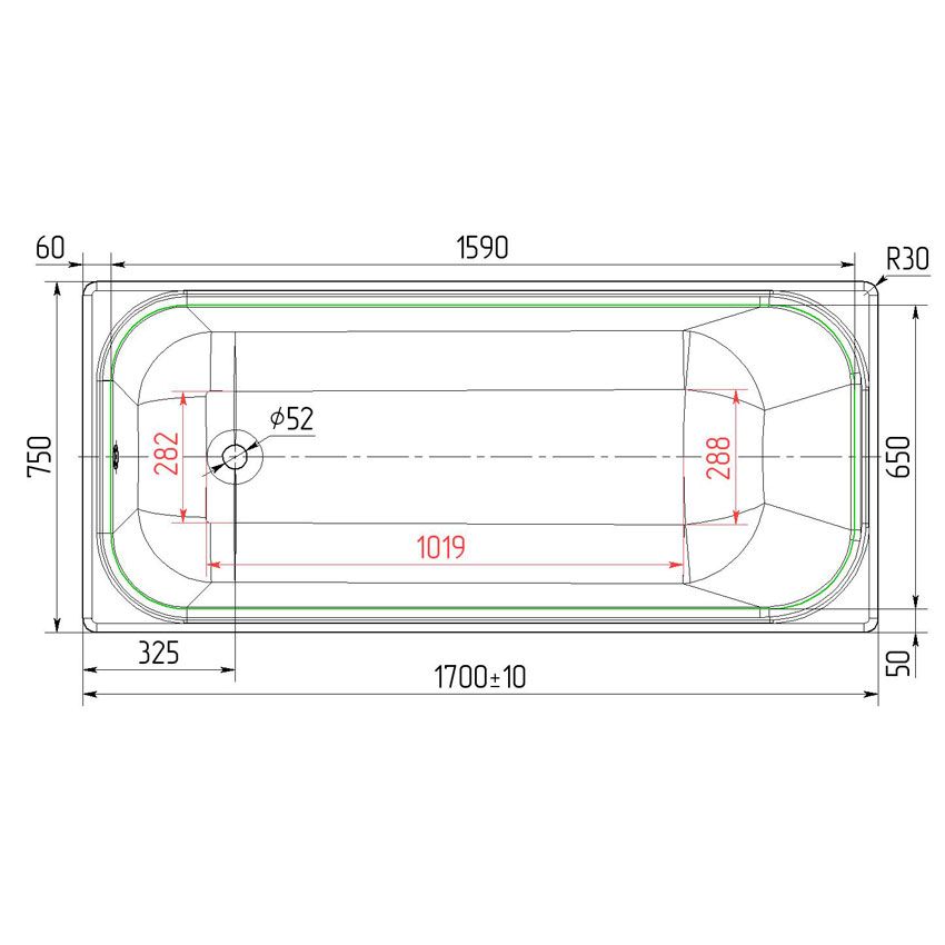 угунная ванна Универсал Ностальжи 170х75х46 см