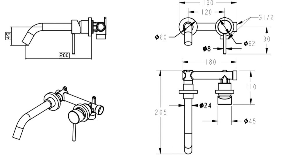 Смеситель встраиваемый для раковины Grocenberg GB511BG Графит купить