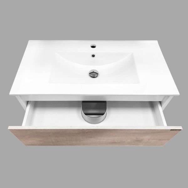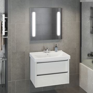 Название: Тумба-умывальник Артикул: Дублин 75 Варианты цвета корпуса: Белый глянец Материал корпуса: влагостойкое ЛДСП Цвет фасада ящиков: Белый глянец Материал фасада: МДФ Габариты (ШхВхГ): 750*570*460 мм Комплектация: раковина Comforty 8057 Подвесная тумба с двумя выдвижными ящиками оснащенными системой плавного закрывания. Фасады покрыты белой глянцевой эмалью.