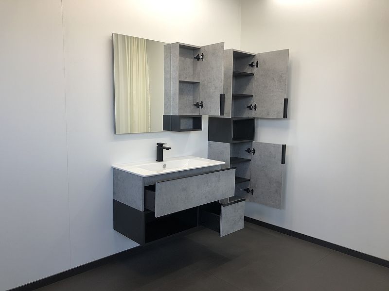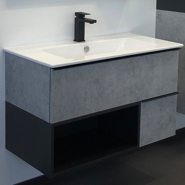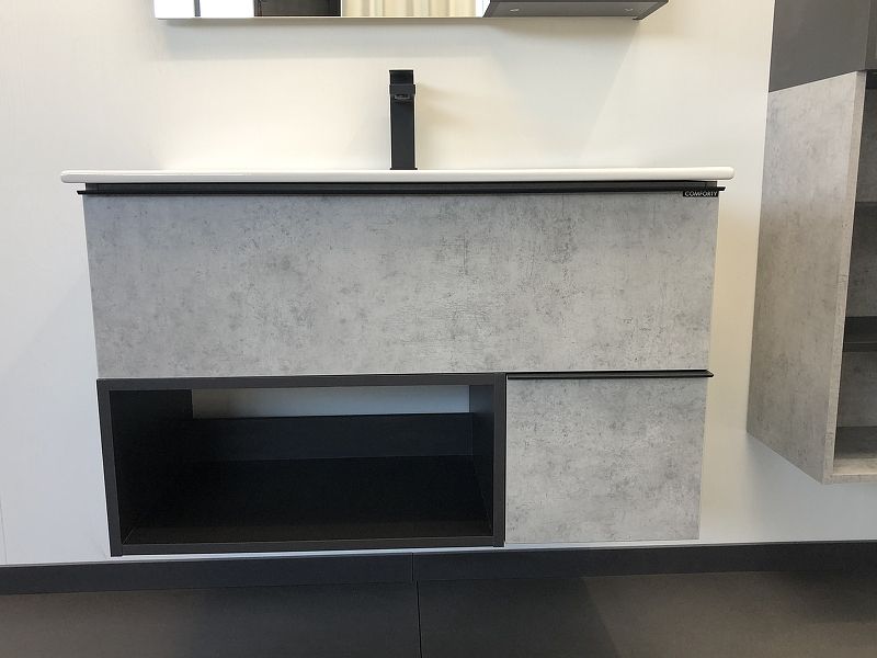 Подвесная тумба с раковиной Comforty Франкфурт 90 00-00007342.Характеристики:Тумба:Цвет корпуса и фасада: бетон светлый.