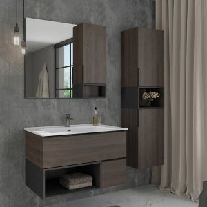 Comforty Тумба-умывальник "Франкфурт-90" дуб шоколадно-коричневый с раковиной Quadro 90
