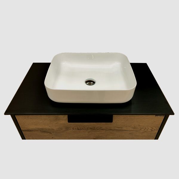 Comforty Тумба-умывальник "Кёльн-75" дуб темный с черной столешницей с раковиной Comforty T-Y9378