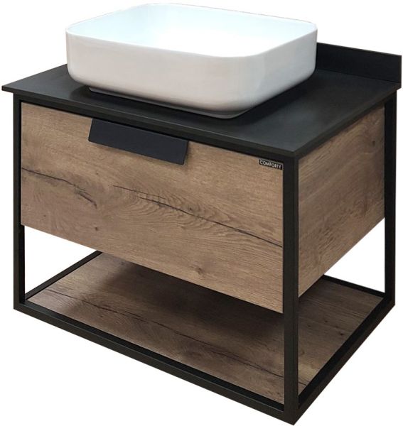 Comforty Тумба-умывальник "Кёльн-75" дуб темный с черной столешницей с раковиной Comforty T-Y9378 купить
