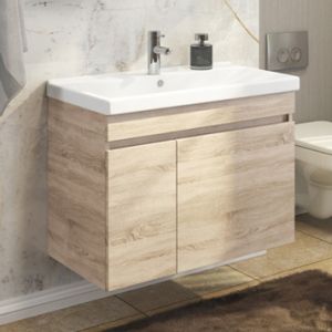 Название: Тумба-умывальник Артикул: Тромсе 80 Варианты цвета корпуса и фасада: Дуб Сонома Матери... Подробнее