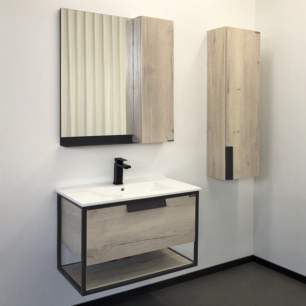 Зеркальное высококачественное полотно с амальгамой на основе серебра. Створка мебельного элемента оснащена петлями с системой плавного закрывания. За дверцей одна горизонтальная полка. Зеркало-шкаф состоит из двух отдельных элементов: зеркала и шкафчика - поэтому универсально, может быть подвешено в правом или левом варианте. Полка зеркала из металла окрашенного в черный муар или графит.