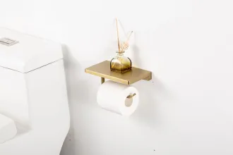 Держатель для туалетной бумаги Gappo G30803-3 с полочкой золотой сатин