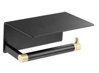 Держатель для туалетной бумаги с полочкой Rose RG3005H-1, золото/черный.