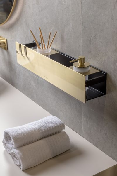 Полка Boheme Space идеально подходит для использования как в мокрых, так и в сухих зонах. Открывающаяся передняя часть комфортна для ухода.
