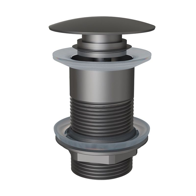 Донный клапан нажимной без перелива в цвете вороненой стали. Механизм CLICK-CLACK устойчив к заеданиям и засорам, поверхность проста в уходе. Решение для комфортного и чистого использования каждый день.