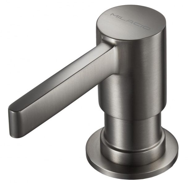 Механический врезной дозатор для мыла и моющего средства MILACIO MCU.933.GM, выполненный в цвете «вороненая сталь», — стильное решение и яркая изюминка в вашем интерьере.
