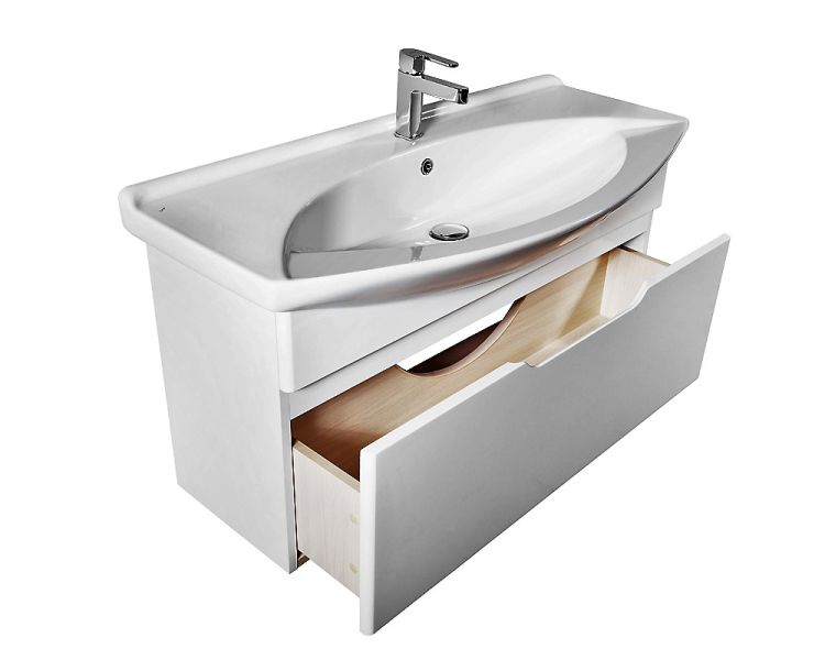 Подвесная классическая коллекция в 4-х размерах 65, 75, 85, 105 Лаконичный дизайн, глянцевая поверхность фасада, механизмы Hettich. Небольшая глубина тумбы органично впишется в любую, даже небольшую ванную комнату. Глубокий ящик. В комплект можно докупить зеркальные шкафы, пенал, полупенал.