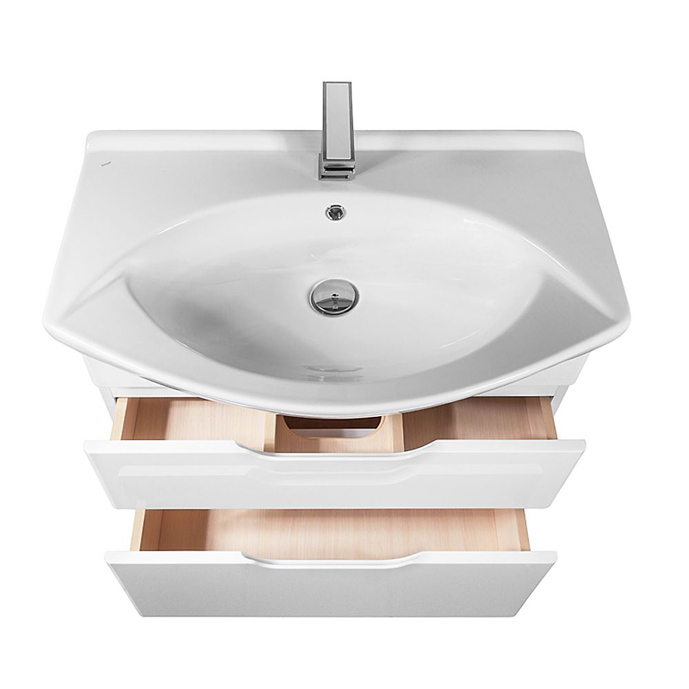 Напольная классическая коллекция в 4-х размерах с 2-мя выдвижными ящиками. Верхний ящик с органайзером Во всех предметах используются механизмы с доводчиками Hettich. Хромированные ножки. В комплект можно докупить зеркальные шкафы, пенал, полупенал.