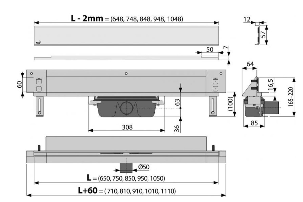 • Сифон прочно соединен с желобом и гарантирует 100% водонепроницаемость
