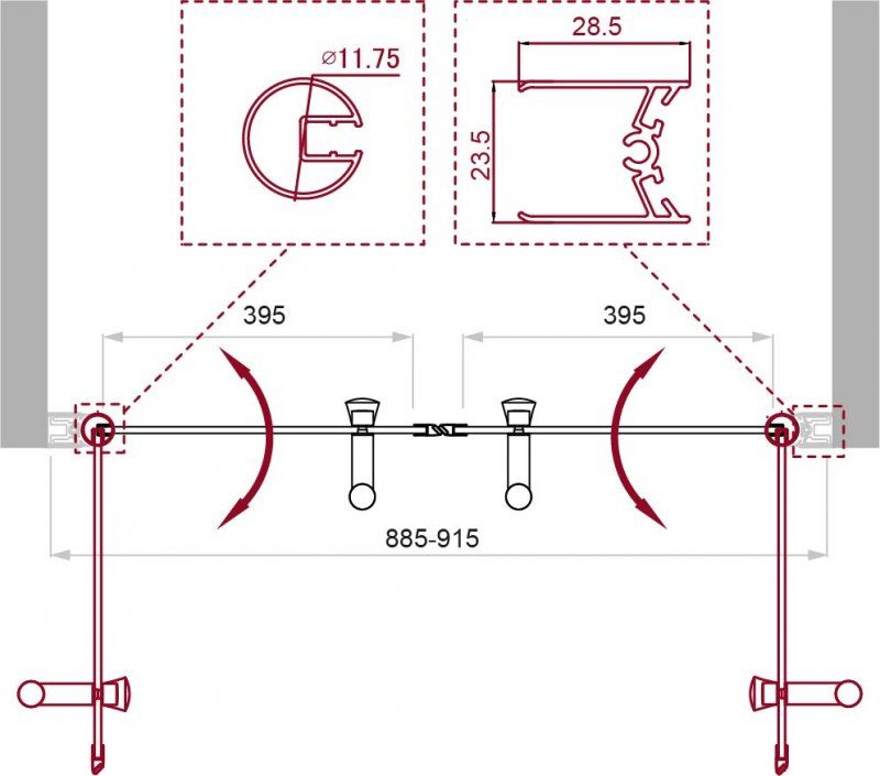 Регулировка ширины: предусмотрена за счет боковых профилей