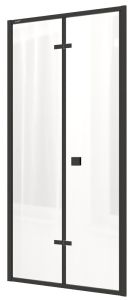 Душевая дверь из прозрачного закаленного стекла (5 мм). Полотно устойчиво к случайным ударам.Алюминиевый черный профиль Cromato не деформируется при высокой влажности и смене температуры. Петли и ручки Acciaio puro выполнены из чистой стали, устойчивы к образованию коррозии.Душевая дверь крепится к стене, подходит для установки на правую или левую сторону. Дверь-гармошка их 2-х частей складывается во внутрь душевой зоны и образует широкий вход.1 витрина = 4 вида товара на продажуДостоинства душевой двери: