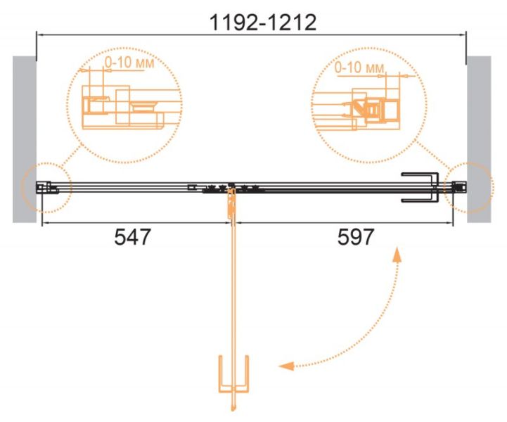 Регулировка ширины: предусмотрена за счет боковых профилей