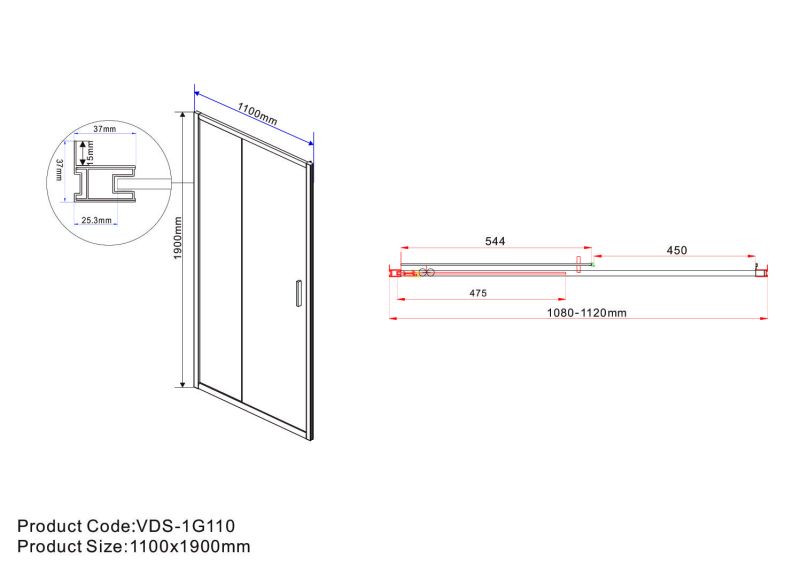 Душевая дверь Vincea Garda VDS-1G110CLB, 1100, черный, стекло прозрачное